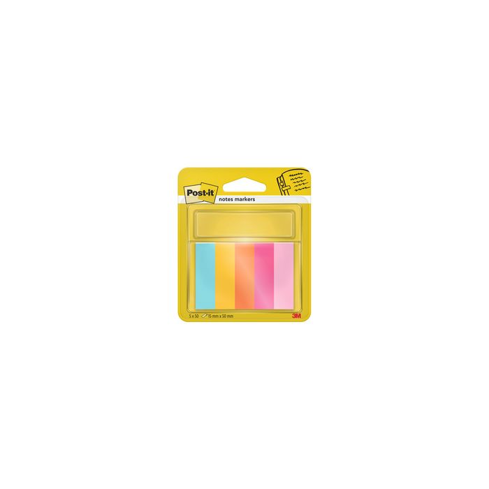 Post-it Marque-page Page Marker, papier, étroit, Beachside 15 x 50 mm, uni, 100 feuilles/bloc, assorti dans les couleurs: turquoise, ultrajaune, vitalorange, powerpink, flamingopink contenu: 5 x 50 feuilles (670-5-BEA / 7100259442 / BP1265)