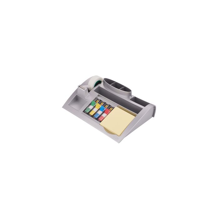 Post-it Organiseur de bureau, garni, argent incl. 1x bloc-notes adhésif Post-it (jaune, 76 x 76 mm), 4x 35 marque-pages Index mini et 1x rouleau adhésif Magic Tape 19 mm x 33 m (C50 / 7000062207 / 50040)