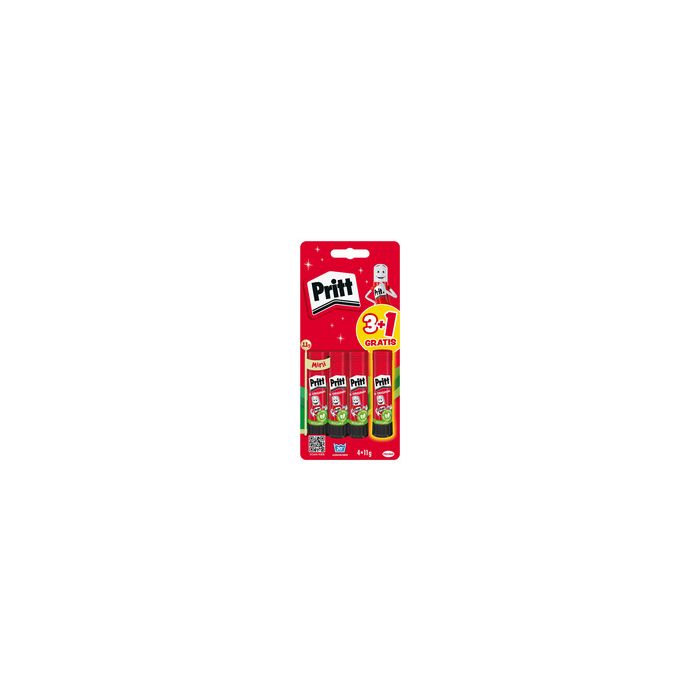 Pritt Bâton de colle BTS 2025, 4 x 11 g, blister composé à 97% de matières à base naturelle, sans solvant, colle papier, carton, photos et étiquettes, contenu: 4 bâtons de colle de 11 g (PGS6B)