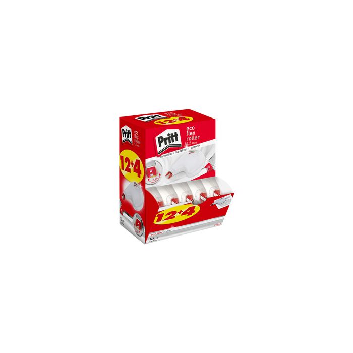 Pritt Roller de correction Eco Flex, multipack de 16 4,2 mm x 10 m, boîtier: 100% de plastique recyclé, design ergonomique, pour une application latérale, embout flexible et capuchon protecteur contenu: 16 pièces (9H PRKEM)