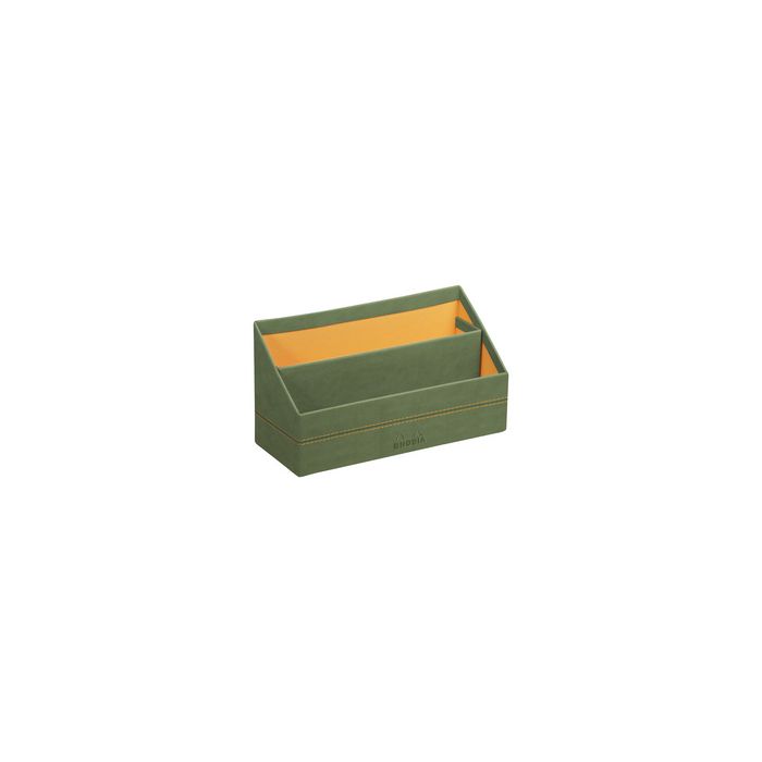 RHODIA Porte-courrier, en simili cuir, sauge dimensions: (L)250 x (P)100 x (H)140 mm, 2 compartiments, avec l'élégant logo RHODIA embossé (194608C)