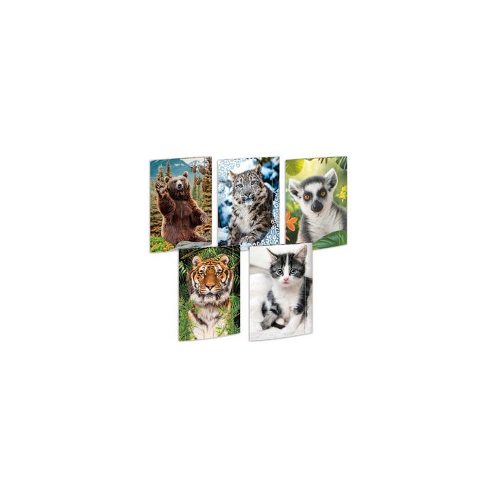 RNK Verlag Carton à dessin "Animaux", A3 - assortiment imprimé à l'extérieur et à l'intérieur, 3 rabats intérieurs,élastique coloré, dim.: (L)320 x (H)430 mm, assorti en 5 motifs: Ours, Léopard des neiges, Lémurien, Tigre, Chat contenu: 15 pièces (45033)