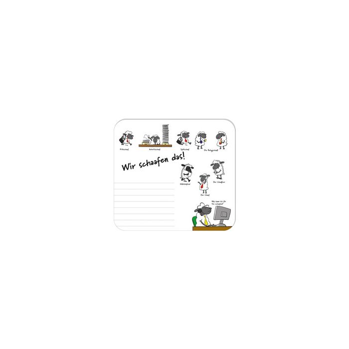 RNK Verlag Bloc tapis de souris "Wir schaafen das!" 240 x 220 mm, tapis de souris et bloc-notes en un, encollé en haut et en bas, 30 feuilles, (l)240 x (L)220 mm, avec des dessins humoristiques (46653)