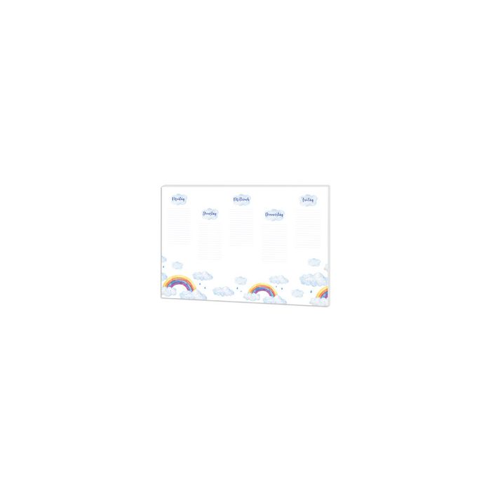 RNK Verlag Papier-Schreibunterlage "Rainbow", blanko --------------- für den Markt: D / L / A / CH --------------Maße: 600 x 420 mm, 25 Blatt, recycelbar, mit Wochentagsfeldern und Motivdruck (46659)