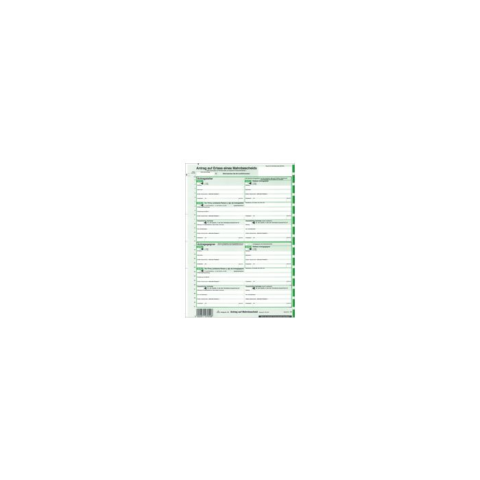 RNK Verlag Vordruck "Antrag auf Erlass eines Mahnbescheids" -------------------- Für den Markt: D ----------------------210 mm x 24", SD, selbstdurchschreibend, 2-seitig, für Nadeldrucker oder manuelle Ausfüllung, für das automatisier-te Mahnverfahren gepackt zu 25 Stück (705)