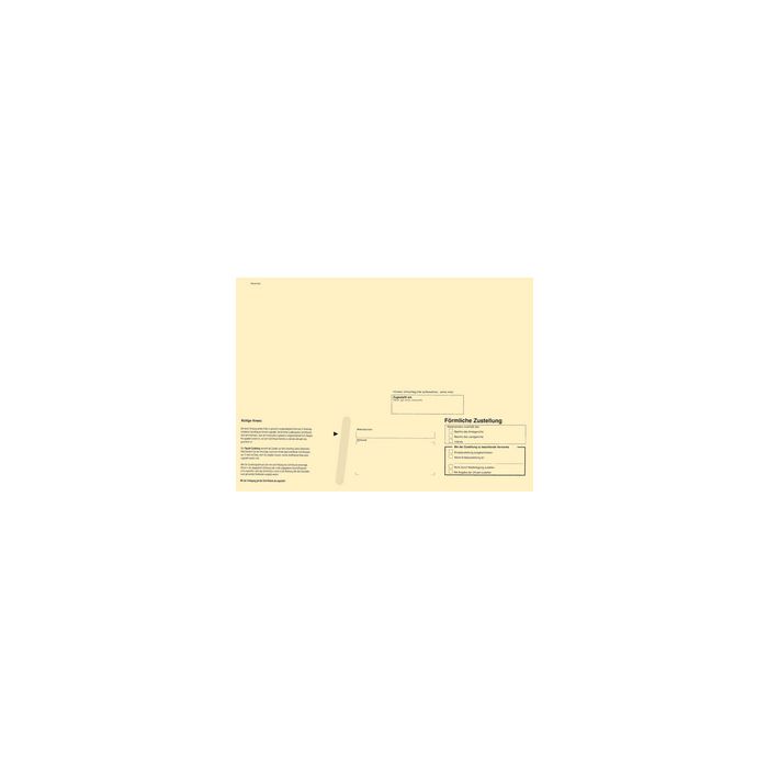 RNK Verlag Zustellungsumschlag, DIN C4, ohne Fenster ------------------- Für den Markt: D -----------------------100 g/qm, Recycling gelb, Haftklebung, 324 x 229 mm, Einstecköffnung für die Zustellungsurkunde vorne, beinhaltet: 50 Zustellungsumschläge (2042/50) der innere Umschlag für die Zustellung