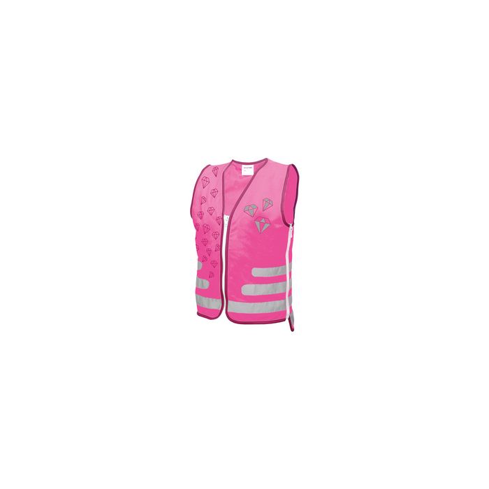ROTH Gilet de sécurité pour enfants, ReflActions "Diamant" rose vif, surfaces réfléchissantes, matière fluorescente, 100% polyester, taille réglable via un zip sur les côtés, certifié selon la norme EN 17353 (89315)