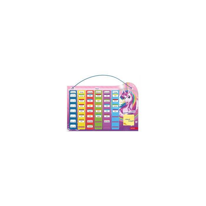 ROTH Klipp & Klar Stundenplan Steck-Fix "Einhornportrait" mit Steckkarten für die Fächer, Format: 420 x 297 mm, inkl. Haftnotizen, stabile Rückwand mit Kordel (679268)