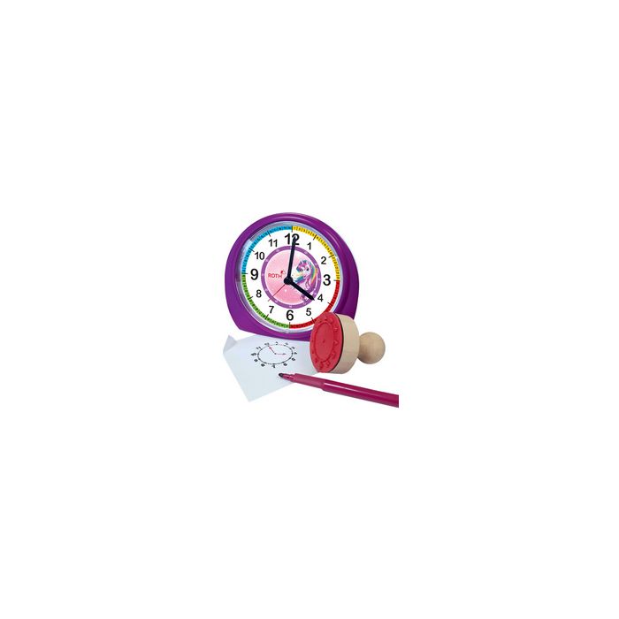 ROTH Réveil pour enfants & tampon, kit "Licorne" le kit contient un réveil pour enfants avec quarts d'heure séparés visuellement, très gros chiffres, rétroéclairage, fonction snooze, tampon pour inscrire et apprendre l'heure, fonctionne sur pile - non incluse dans la livraison (89270)