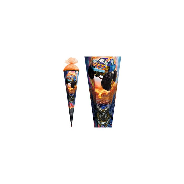 ROTH Schultüte "Monstertruck Fire", eckig, 850 mm Tüllverschluss, mit Spezialborte mit stabiler ROTH-Spitze (678841)