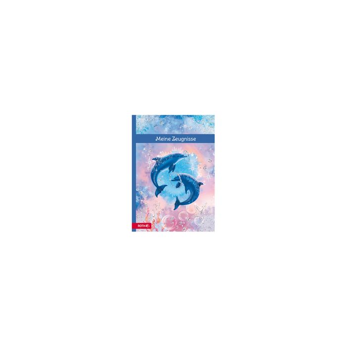 ROTH Zeugnismappe "Delfine", mit Design und Effekt Format: DIN A4, inkl. 10 PP-Hüllen, mit Glittereffetk, wattiertes Cover, Aufdruck: Meine Zeugnisse (89342)