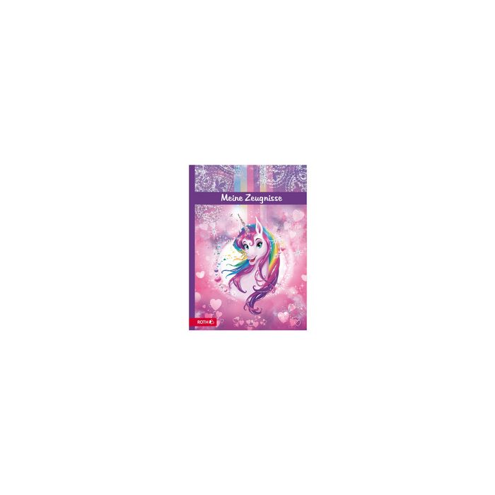 ROTH Zeugnismappe "Einhornportrait", mit Design und Effekt Format: DIN A4, inkl. 10 PP-Hüllen, mit Glittereffetk, wattiertes Cover, Aufdruck: Meine Zeugnisse (89325)