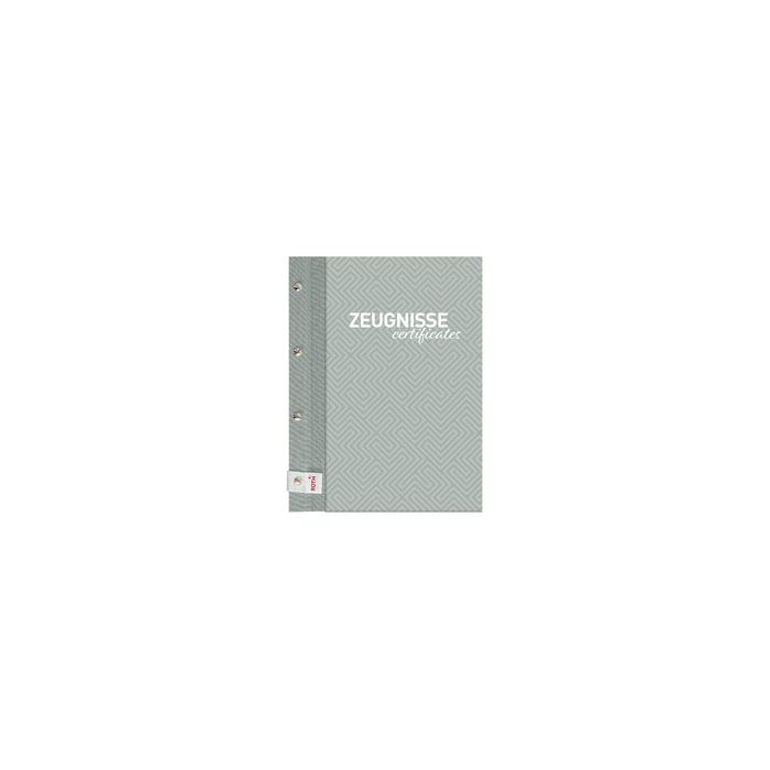 ROTH Zeugnismappe Pattern mit Buchschrauben "Dusty Mint" farbiger Metallic-Leineneinband mit Buchschrauben, erweiterbar, inkl. 12 PP-Hüllen, für Format DIN A4, mit Aufdruck "ZEUGNISSE / certificates" (89464)