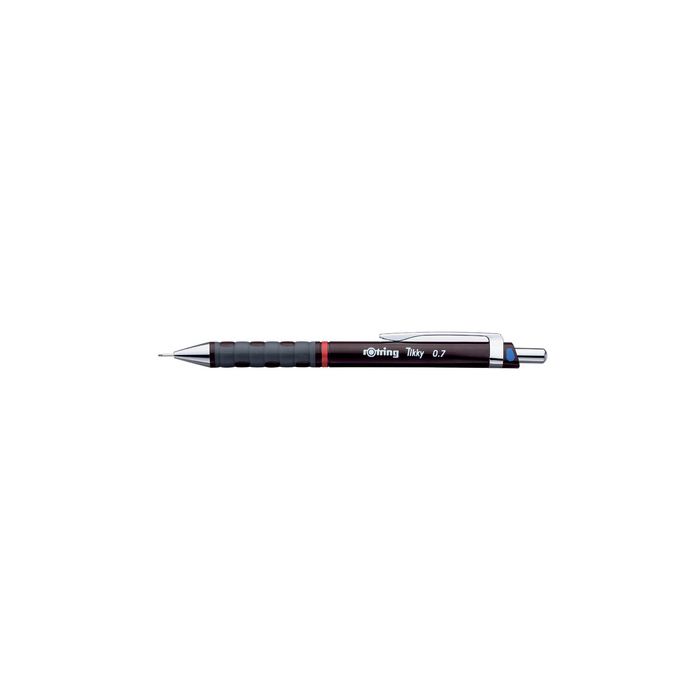 rotring Porte-mines fin Tikky 0,7 mm, rouge vin avec code couleur, conduit rigide, zone de préhension caoutchoutée ergonomique, clip/bouton poussoir/conduit métal(ancien: S0770470 / nouveau: 1904692)
