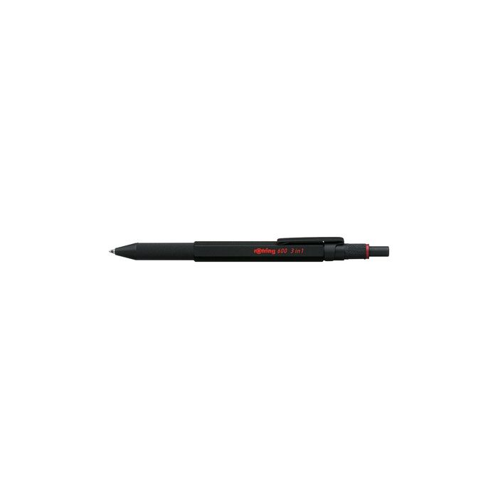 rotring Stylo multifonction 3 en 1, noir porte-mines et stylo à bille en un seul stylo, épaisseur de la mine: 0,5 mm, largeur de tracé: F, couleurs du tracé: noir / rouge, dans un coffret cadeau (2164108)