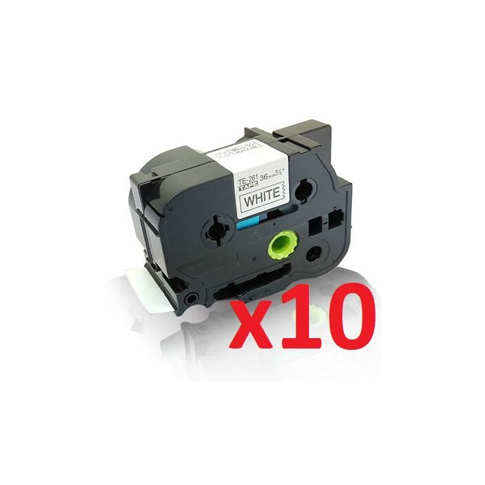 Ruban cassette compatible Brother TZE-261 - Pack de 10 (Noir, Blanc)