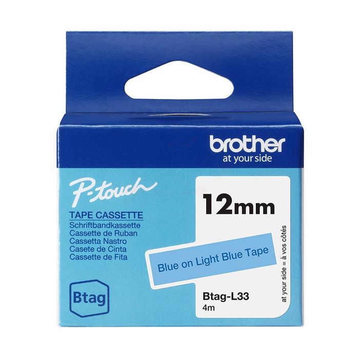 Le Ruban cassette d'origine Brother BTAG-L 33 - bleu clair convient aux entreprises et collectivités en recherche des produits de la marque Brother.