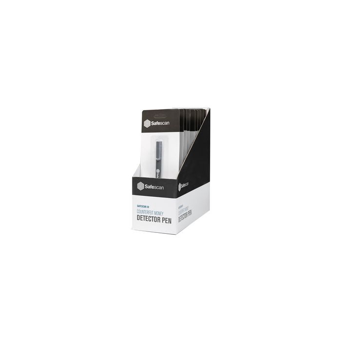 Safescan Stylo détecteur de faux billets "Safescan 30" présentoir de 10, détection directe de l'authenticité, pour toutes les devises, dans une carte blister dimensions du présentoir: (L)100 x (P)235 x (H)255 mm contenu: 10 pièces (111-0378) faux: si l'encre pâle laisse une marque indélébile de couleur violette sur le billet vrai: si l'encre pâle disparait sur le billet