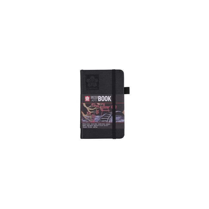 SAKURA Carnet de croquis, 120 x 120 mm, noir 160 pages, 140 g/m2, papier sans acide, papier: noir, couverture: noire, boucle pour stylo, pochette dans la couverture, sangle de fermeture élastique (94141002)