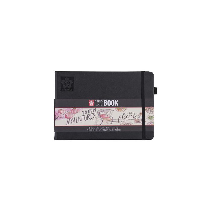 SAKURA Carnet de croquis, 210 x 148 mm, noir/blanc crème 160 pages, 140 g/m2, papier sans acide, papier: blanc crème,couverture: noire, boucle pour stylo, pochette dans la couverture, sangle de fermeture élastique (94140004)