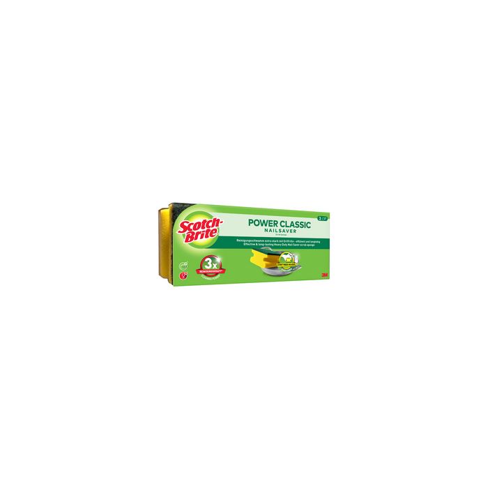 Scotch-Brite Eponge à récurer Classic, paquet de 3 côté grattant ultra puissant, rainure préservant les ongles,couleur: jaune/vert contenu: 3 éponges (CLNS3N / 7100317691)
