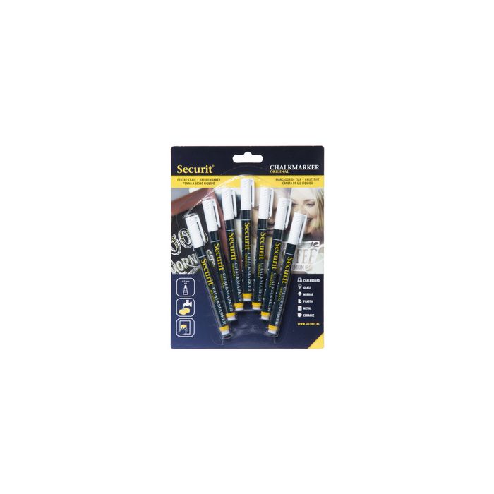 Securit Feutre-craie ORIGINAL SMALL, set de 7 pointe ogive, largeur du tracé: 1-2 mm, sous emballage blister, couleur: blanc contenu: 7 pièces (BL-SMA100-V7-WT)