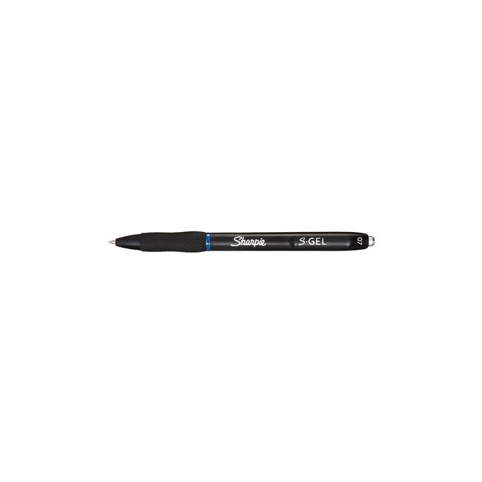 Sharpie Stylo encre gel S-GEL, 0,7 mm, bleu corps noir mat avec détails chromés de la couleur de l'encreclip solide, zone de préhension en caoutchouc, ne bave pas -l'encre sèche en moins de 2 secondes, ne pénètre pas le papier, largeur de tracé : 0,7 mm, couleur de tracé : noir (2136600)