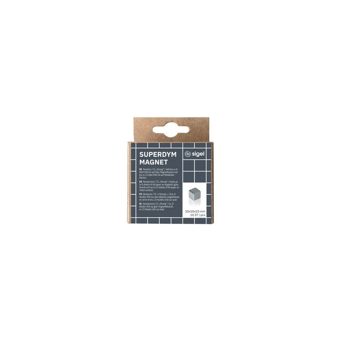 sigel Aimant néodyme cube "Strong" C5, set de 10, argent pour les panneaux de verre magnétiques "artverum", extra fort, supporte jusqu'à 8 feuilles de papier au format A4 nickelé, en forme de cube, dimensions: (L)10 x (P)10 x 10 mmcontenu: 10 pièces (nouveau: BA193 / ancien: GL193)