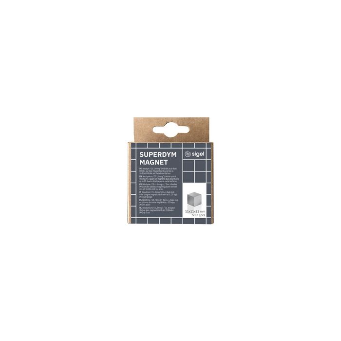 sigel Aimant néodyme cube "Strong" C5, set de 5, argent pour les panneaux de verre magnétiques "artverum", extra fort, supporte jusqu'à 6 feuilles de papier A4 (80 g/m2), nickelé, en forme de cube, dimensions: (L)11 x (P)11 x 11 mmcontenu: 5 pièces (nouveau: BA728)