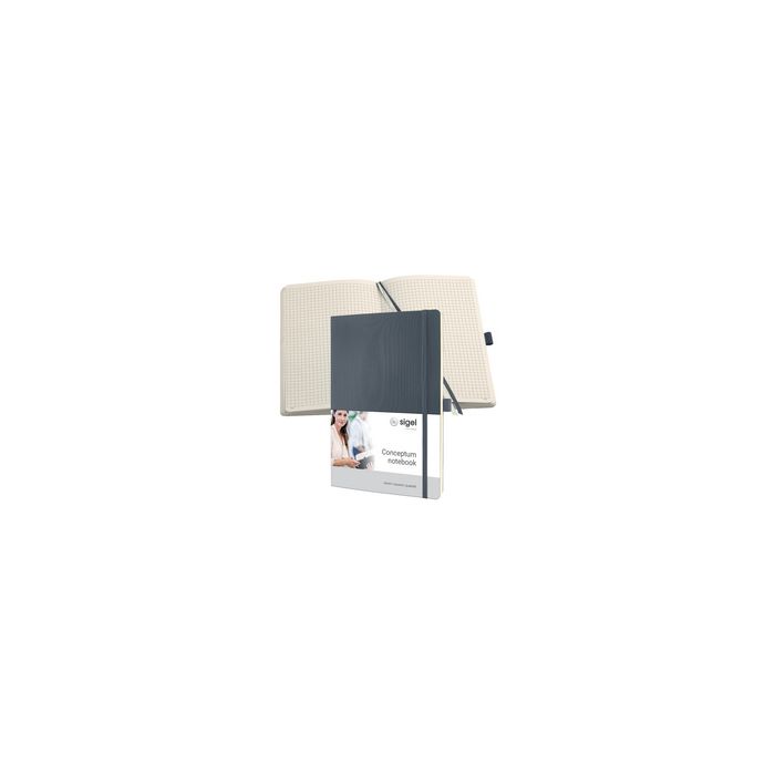 sigel Carnet de notes Conceptum, A4, quadrillé, gris 187 x 270 mm, surface élégante Softwave, couverture souple, pages en chamois, 80 g/m2, avec bande élastique pratique pour la fermeture, 2 signets et passant pour stylo, 97 feuilles, 194 pages numérotées (CO318)