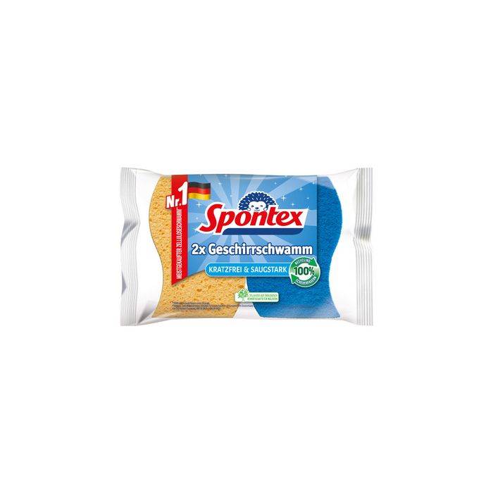 Spontex Éponge à vaisselle, pack de 2 éponge à récurer en viscose avec fibres en PET recyclé, ne raye pas, côté éponge très absorbant en viscose, idéal pour la vaisselle, la porcelaine et les surfaces sensibles (19321008)