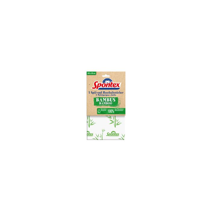 Spontex Torchon Bambus, pack de 5 chiffon multi-usage particulièrement absorbant issu de matières premières 100% renouvelables, nettoie très efficacement, lavable à 60 degrés maximum (19900210)