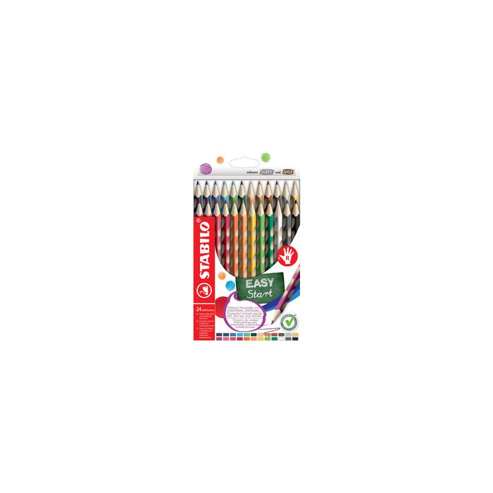 STABILO Crayon de couleur EASYcolors R, étui de 24 triangulaire, pour droitiers, épaisseur de mine: 4,2 mm, longueur: 175 mm, couleur de la tige identique à celle du tacé, tige à relief antidérapant, avec champ pour le nom contenu: 24 crayons (332/24)