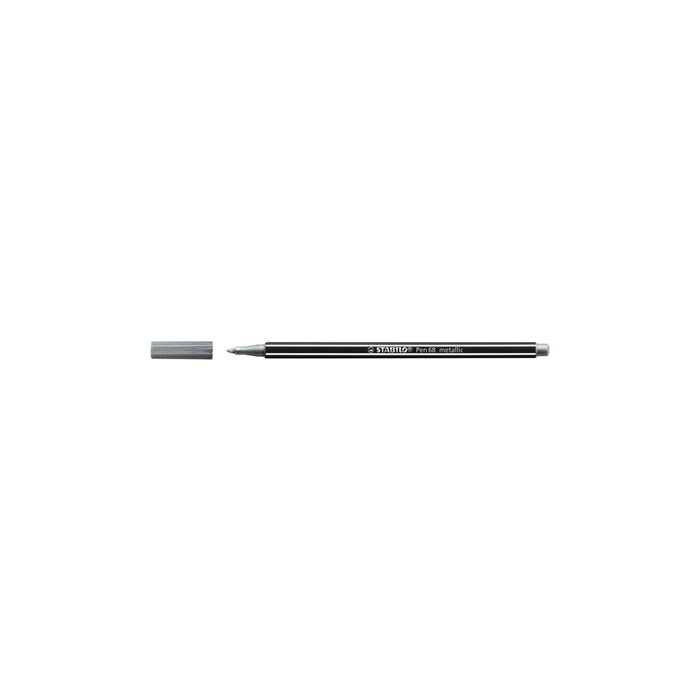 STABILO Stylo feutre Pen 68 metallic, argent encre inodore à base d'eau, capuchon ventilé, pointe ogive bloquée, couleurs intensives, haute résistance à la lumière,pas besoin de secouer, capuchon à fixer à l'autre extrémité,largeur de tracé: 1,4 mm - à conserver horizontalement ! (68/805)