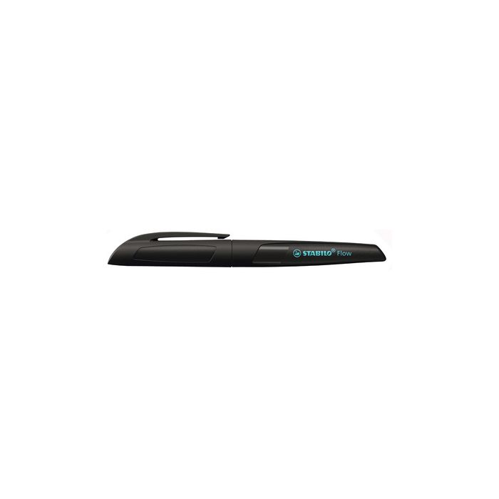 STABILO Stylo plume Flow, noir taille de plume : M, pour droitiers et gauchers, zone de préhension ergonomique, sensation d'écriture douce, protec- tion maximale contre les fuites, plume à pointe en iridium, se recharge avec 2 petites cartouches standard, (5073/7-41) 1 cartouche standard bleu roy incluse