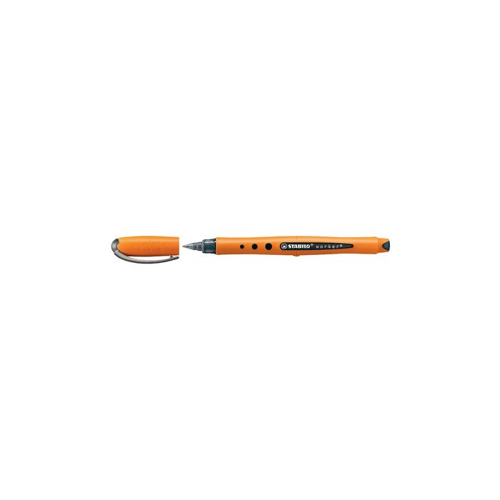STABILO Stylo roller worker fine, noir largeur du tracé: 0,3 mm, capuchon avec clip, surface antidérapante, système à encre liquide, contrôle du niveau d'encre, couleur du manche: orange (2016/46)