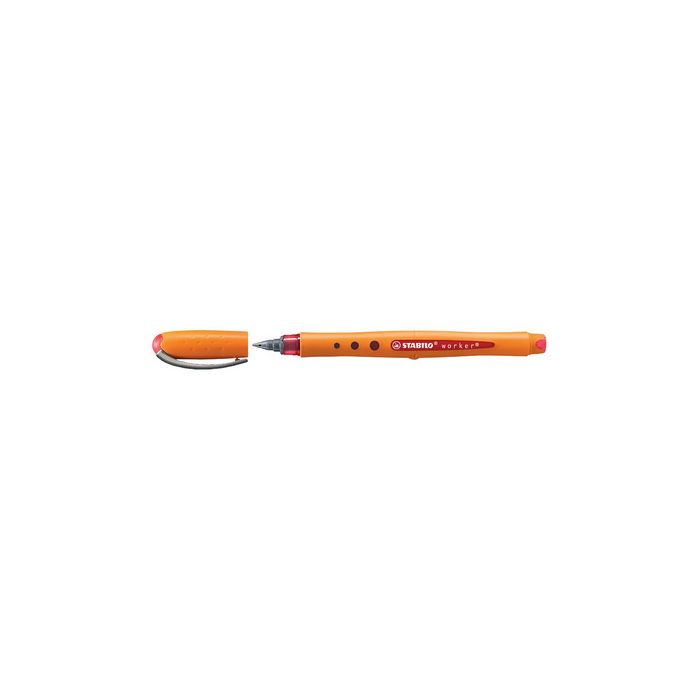 STABILO Stylo roller worker medium, rouge largeur du tracé: 0,5 mm, capuchon avec clip, surface antidérapante, système à encre liquide, couleur du manche: orange (2018/40)