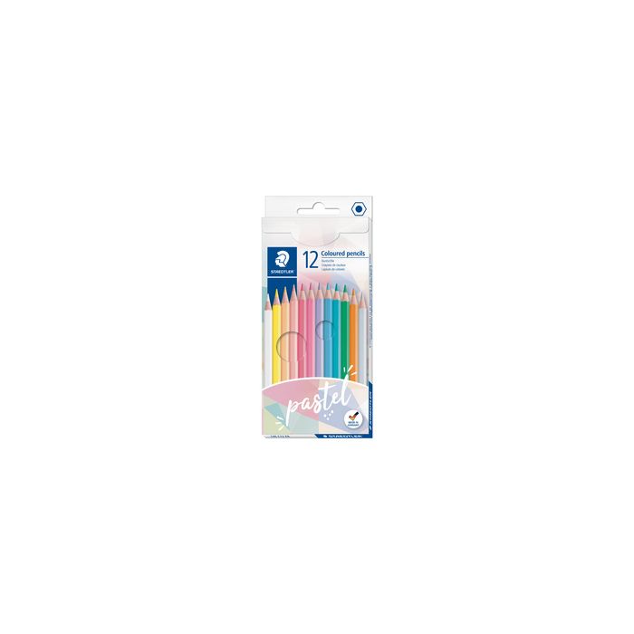 STAEDTLER Crayons de couleur pastel, étui carton de 12 crayon hexagonal, diamètre de mine: 2,9 mm, mine tendre pourdifférentes techniques à sec, couleur très pigmentée, facile à mélanger, contenu: 12 pièces (146 C12 PA) assorti dans les couleurs pastel blanc, jaune clair, ton chair, saumon, rose, carmin clair, violet pastel, bleu pastel,turquoise clair, vert pâle, ocre doré, gris froid