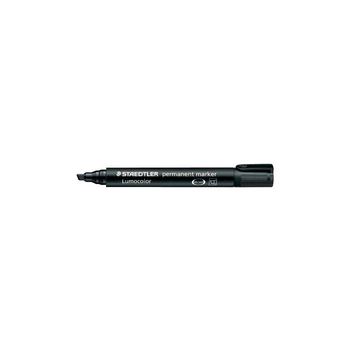 STAEDTLER Lumocolor Marqueur signature permanent, blister marqueur permanent pour marquer & identifier cartons, boîtesclasseurs etc.., largeur de tracé : 2,0-5,0 mm, pointe biseautée, non effaçable, résiste à l'eau et à la lumière, DRY SAFE, pointe bloquée, rechargeable, couleur : noir (350-9 BK-1)