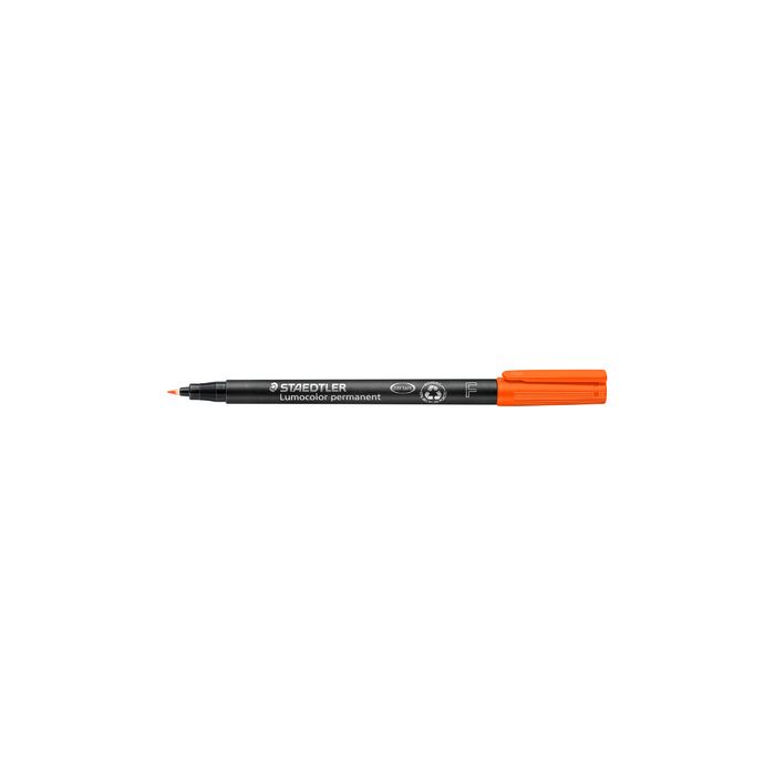 STAEDTLER Marqueur permanent 318F Lumocolor, orange corps à 97% de plastique recyclé suivant ISO 14021, largeur de tracé: 0,6 mm (fin), pointe ogive, indélébile et résistant à l'eau, rechargeable, avec clip, corps noir / embout et capuchon à la couleur du tracé (318-4) >> aussi utilisable comme marqueur OHP et CD