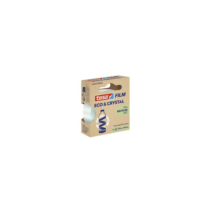 tesa Film ruban adhésif ECO & CRYSTAL, 19 mm x 33 m transparent, film support en plastique fabriqué à 90% avec des bouteilles PET recyclées, entièrement transparent avec une forte adhérence, indéchirable, adapté à tous les dévidoirs tesa film (59034-00000-00)