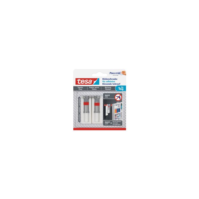 tesa Powerstrips Vis adhésive pour papier peint/plâtre, blanc, ajustable pour un résultat optimal, l'alternative pratique aux vis et clous, amovible et réutilisable, capacité de charge: max. 1 kg contient: 2 vis + 3 languettes (77775-00000-00 )
