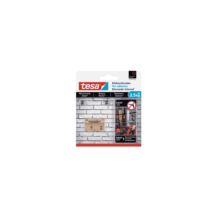 tesa Vis adhésive pour brique, rectangulaire, 10 kg l'alternative pratique pour les vis et les clous, amovible, capacité de charge: max. 10,0 kg contient: 2 vis + colle (77908-00000-00 )