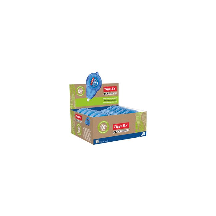 Tipp-Ex Roller correcteur "ecolutions Easy Refill" présentoir, corps en plastique 100% recyclé, transparent bleu, affichage du niveau du ruban, rechargeable, ruban polyester résistant, réécriture immédiate, en paquet de 10 pièces en présentoir (8794242) pour droitiers & gauchers