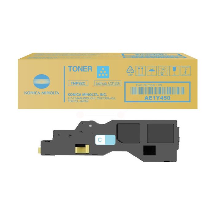 Le Toner d'origine Konica Minolta AE1Y450 / TNP-92 C - cyan convient aux entreprises et collectivités en recherche des produits de la marque Konica Minolta.