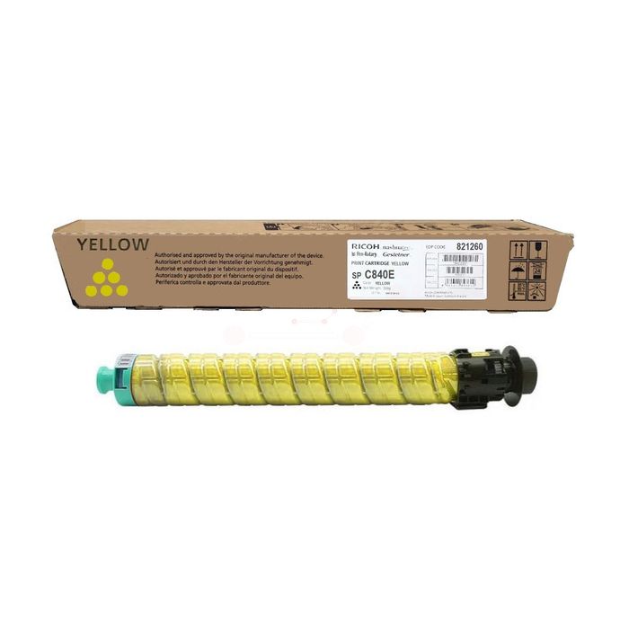 Le Toner d'origine Ricoh 821260 / SP C 840 E - jaune convient aux entreprises et collectivités en recherche des produits de la marque Ricoh.