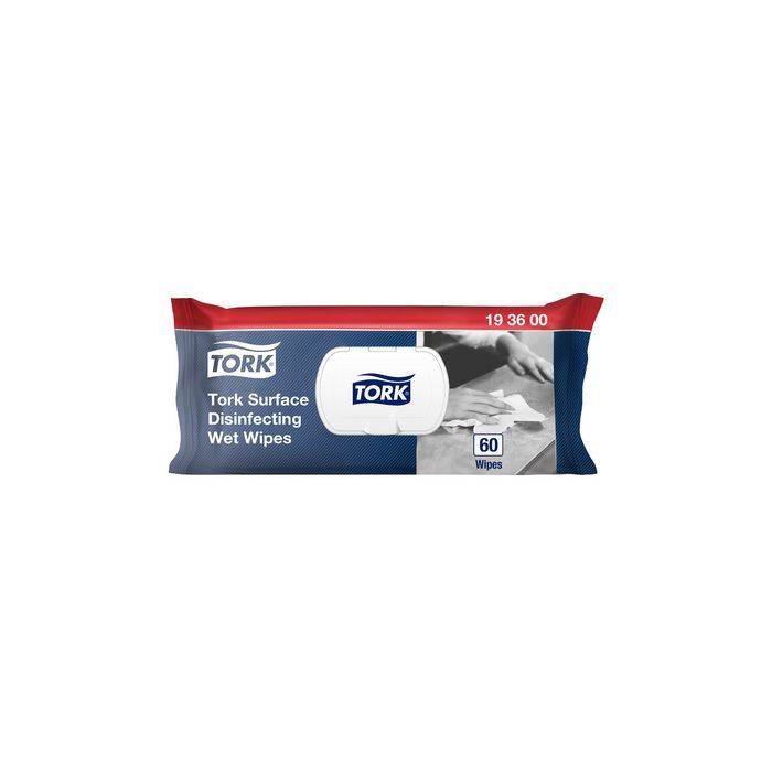 TORK Lingette désinfectante pour surfaces, 180 x 200 mm lingette humide, 1 couche, emballage refermable, testé dermatologiquement, sans éthanol, qualité: premium contenu: 60 lingettes (193600) Attention: produit biocide, à utiliser avec précaution. Toujours lire l'étiquette et les informations produit avant usage !