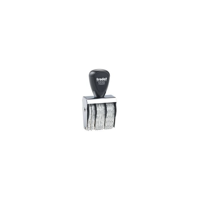 trodat Tampon dateur français 1020 -------------------- pour le marché: F / L -----------------mois en lettres, taille d'empreinte: 5 x 32 mm, hauteur des caractères: 5 mm, boîtier en métal nickelé, molette en plastique pour changer la date, poignée en plastique (1020 / 54231)