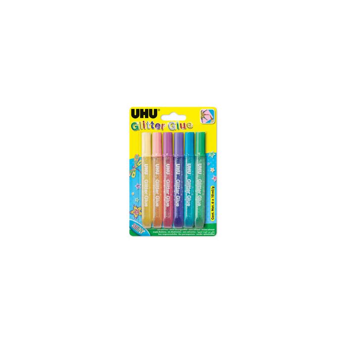 UHU Colle scintillante Glitter Glue Shiny, 6 x 10 ml