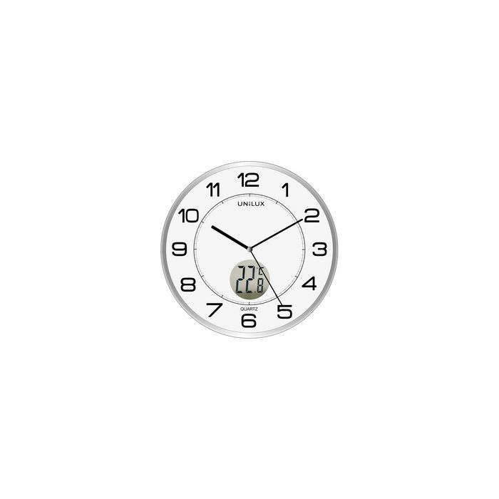 UNiLUX Horloge murale à quartz "TEMPUS", diamètre: 300 mm argent, chiffres en noir, avec affichage LCD de la température intérieure, avec trotteuse, cadre en plastique, fonctionnement par pile: mignon AA - non fourni (400094592)
